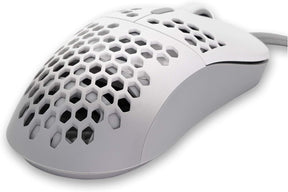 ماوس ألعاب سلكي بتصميم قرص العسل خفيف الوزن للغاية من Gwolves HTM Hati بمستشعر 3360 - زلاجات PTFE - 6 أزرار - 61 جيجا فقط (أبيض)