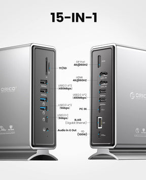 محطة إرساء Orico Dual 4K HDMI USB C ثلاثية العرض لجهاز MacBook Pro M1، Mac، Window