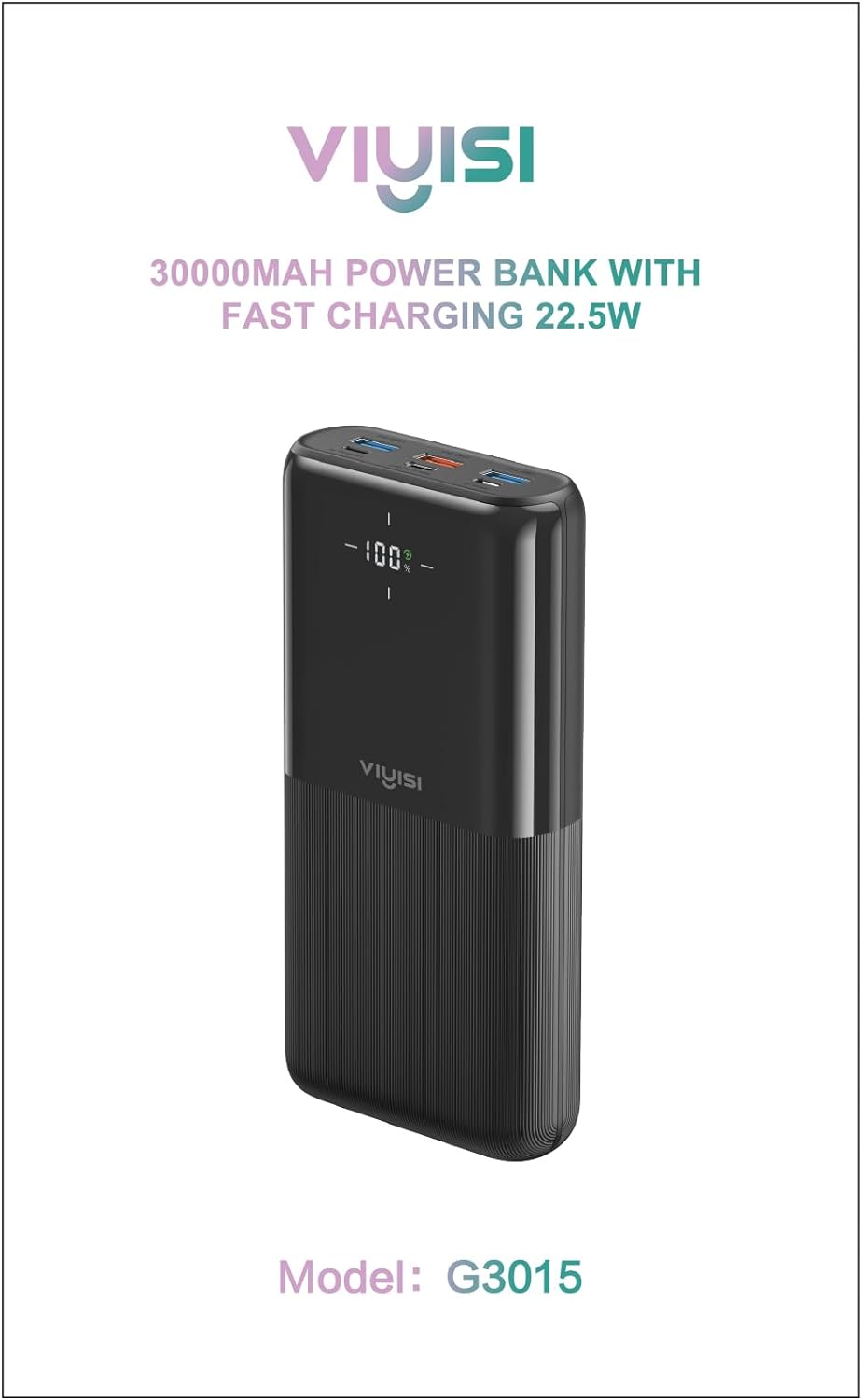 VIYISI باور بانك 30000 مللي أمبير 22.5 واط شحن سريع حزمة بطارية USB C شاحن محمول مع 4 مخارج و3 مدخلات لهواتف Samsung iPhone iPad Android
