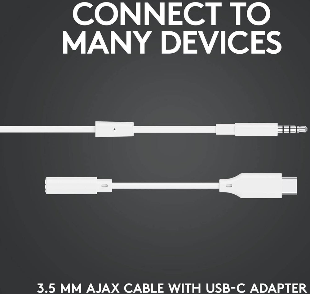 Logitech G333 Gaming Earphones with dual audio drivers, in-line mic and volume control, compatible with PC/PS/Xbox/Nintendo/Mobile with 3.5mm Aux or USB-C Port - White