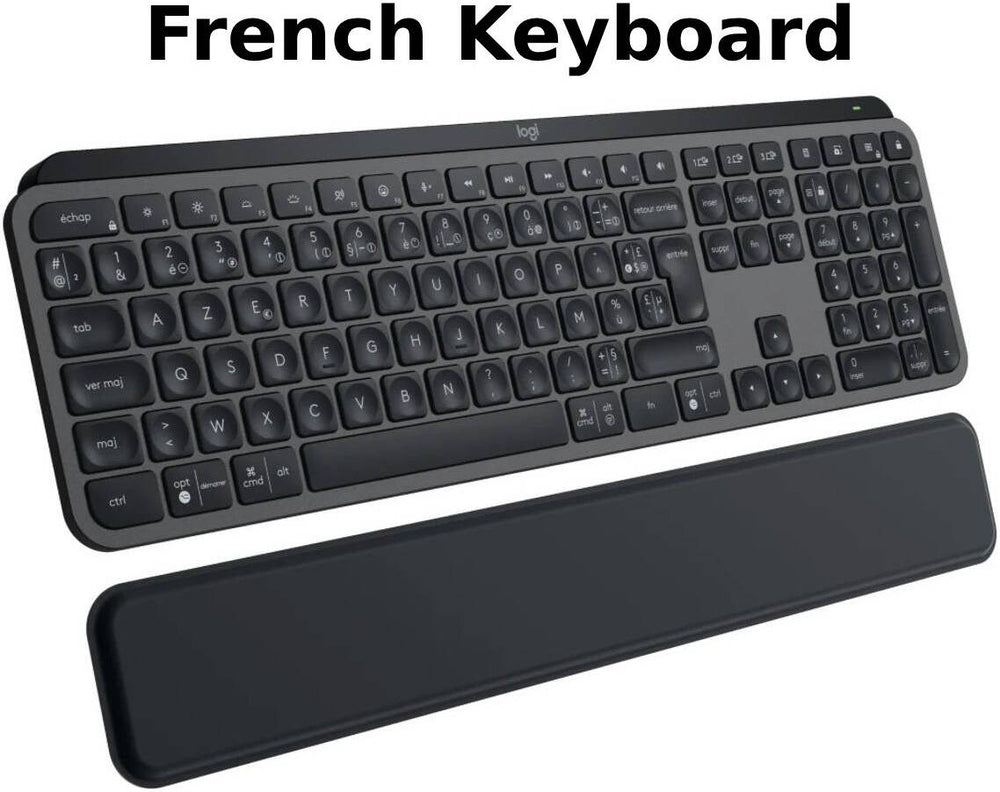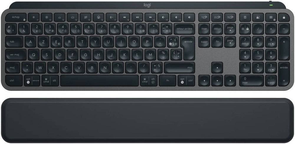 Logitech MX Keys Plus Advanced Wireless Illuminated Keyboard, Fast Fluid Precise Typing, Emoji Dictation & Mic Mute/Unmute Keys, French AZERTY Layout, With Palm Rest, Graphite | 920-009406