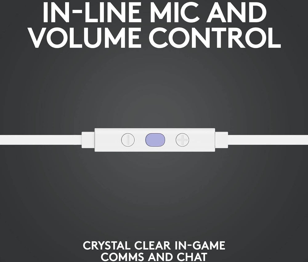 Logitech G333 In Ear Gaming Earphone, In Line Mic and Controls, Gaming Grade Dual Drivers, Durable Aluminum Housing, Adaptive Comfort, White / Purple | 981-000930
