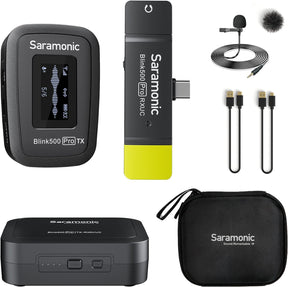 Saramonic Blink500 Pro B5 Mini microphone stéréo sans fil double canal avec étui de chargement, écran OLED et sortie casque 3,5 mm avec connecteur USB-C récepteur pour smartphone Android de type C MacBook PC