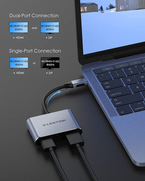 LENTION USB C to HDMI & DisplayPort Adapter, Support Single 4K@60Hz or Dual 4K@30Hz, Compatible New MacBook, Surface Book 2/Pro 7/Go, XPS 13/15, More, Stable Driver Certified (CB-C52s, Space Gray NOB